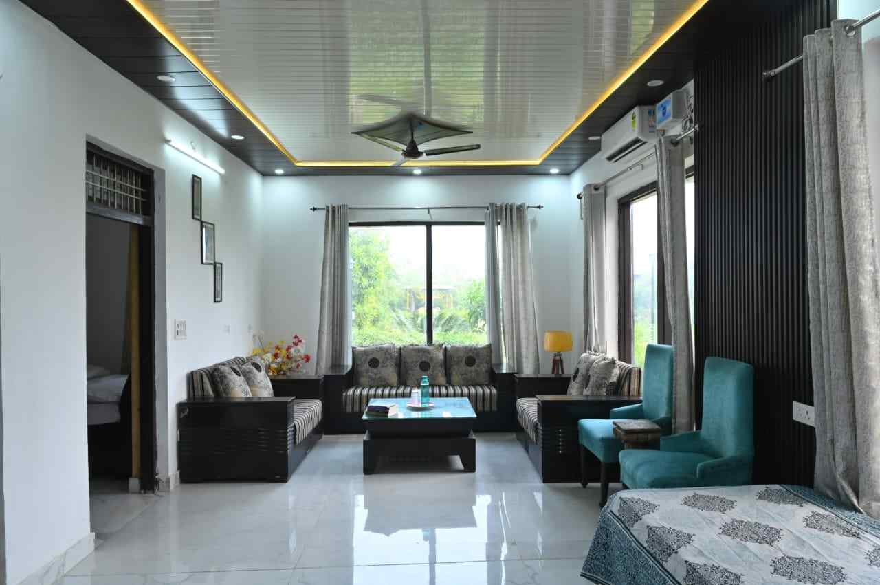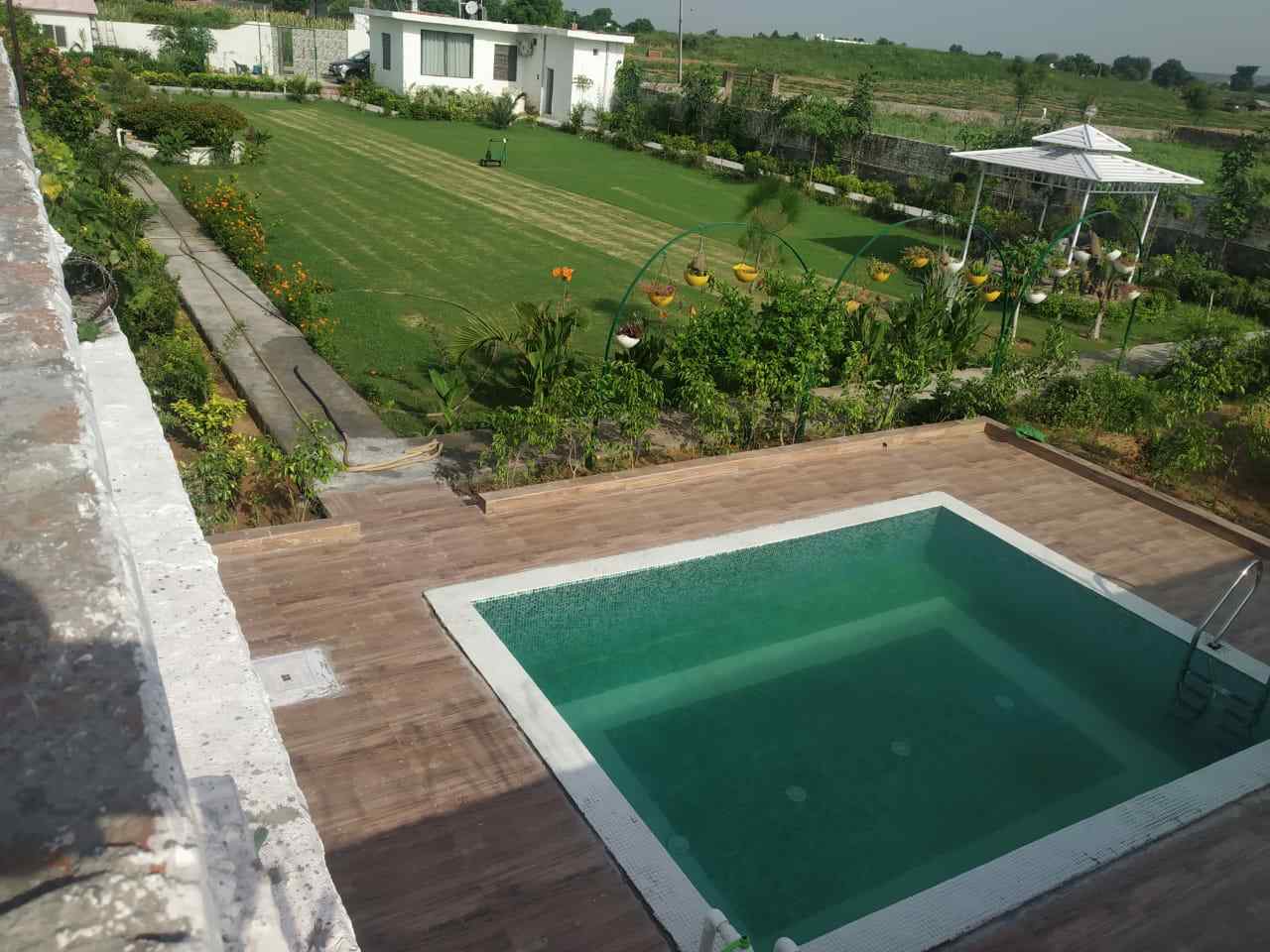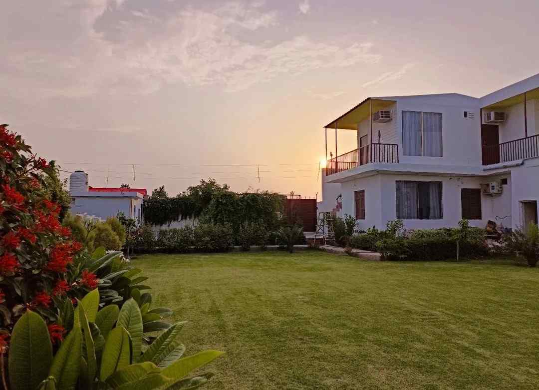 This entire private villa farmhouse offers a serene escape with a private pool, just minutes from Gurugram, perfect for relaxing weekends or group getaways near the city.