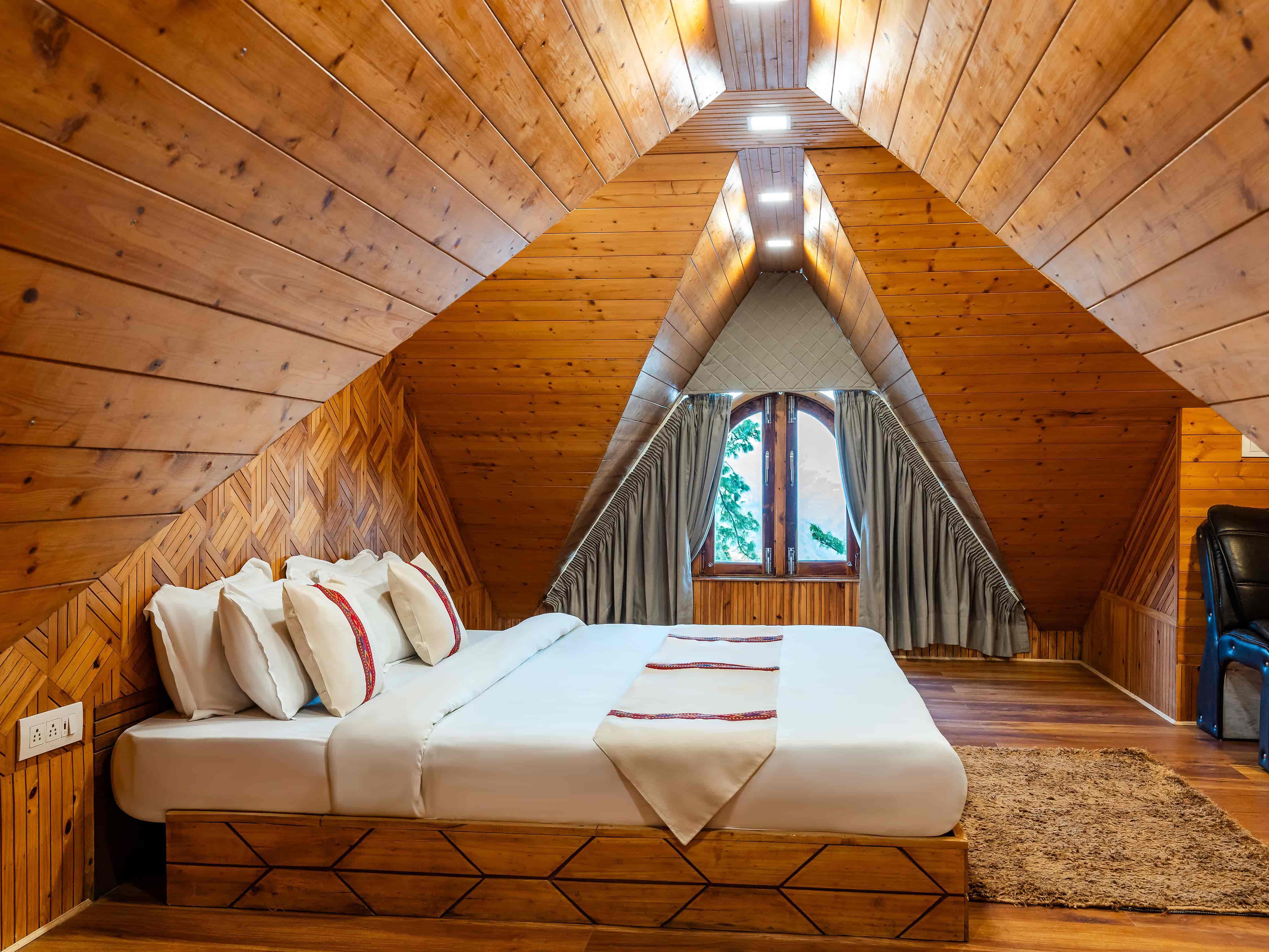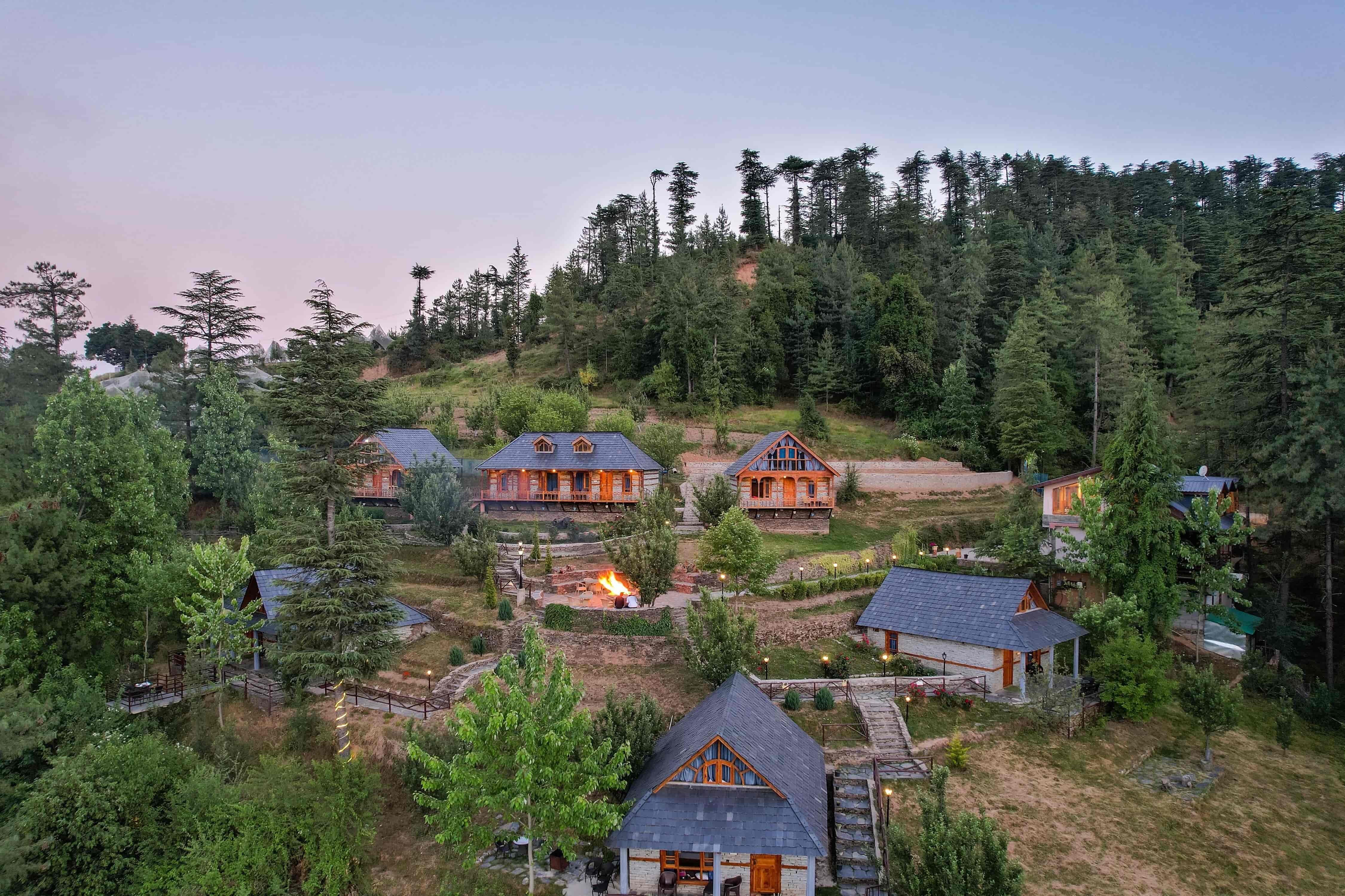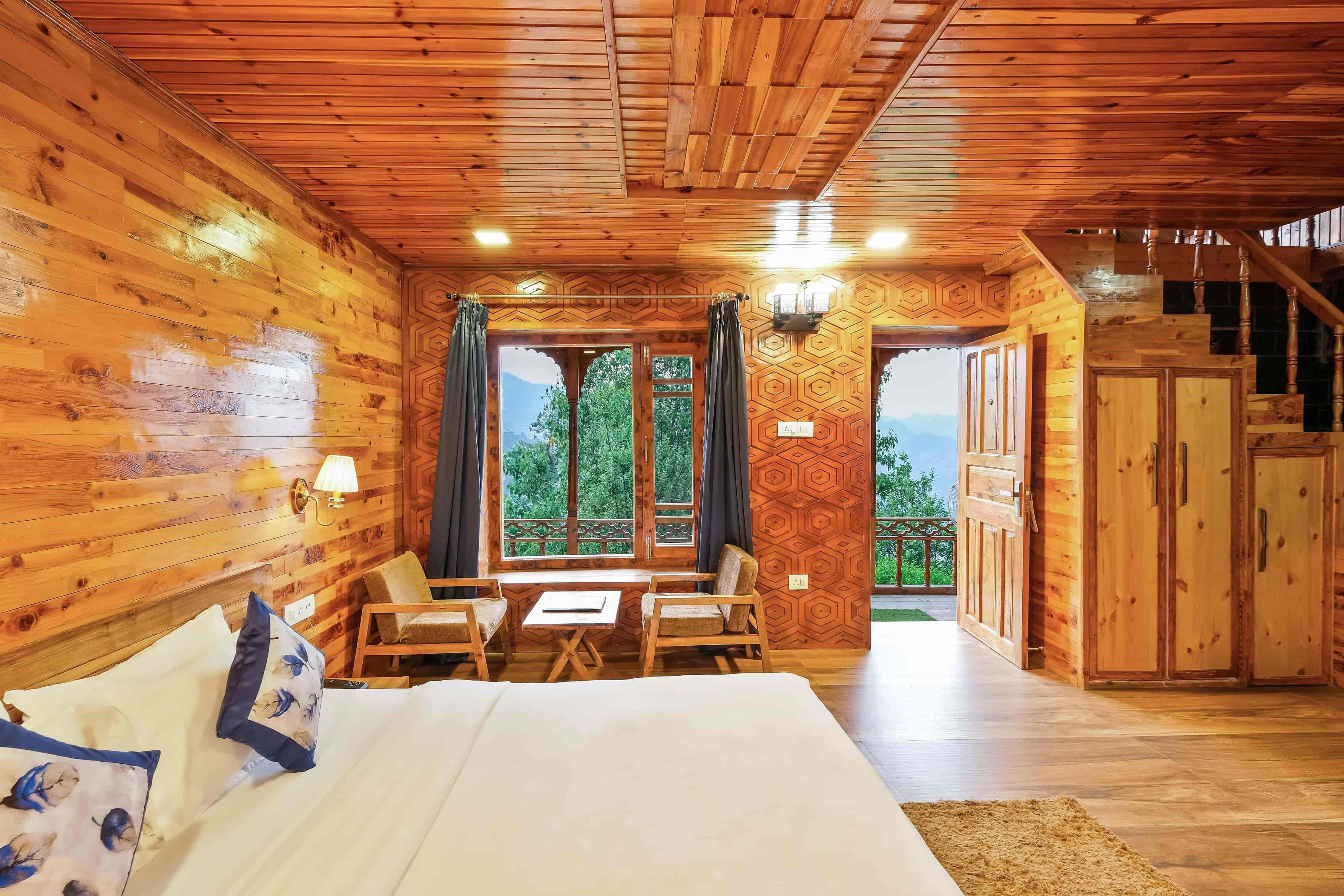 - Wooden duplex cottages with mountain views